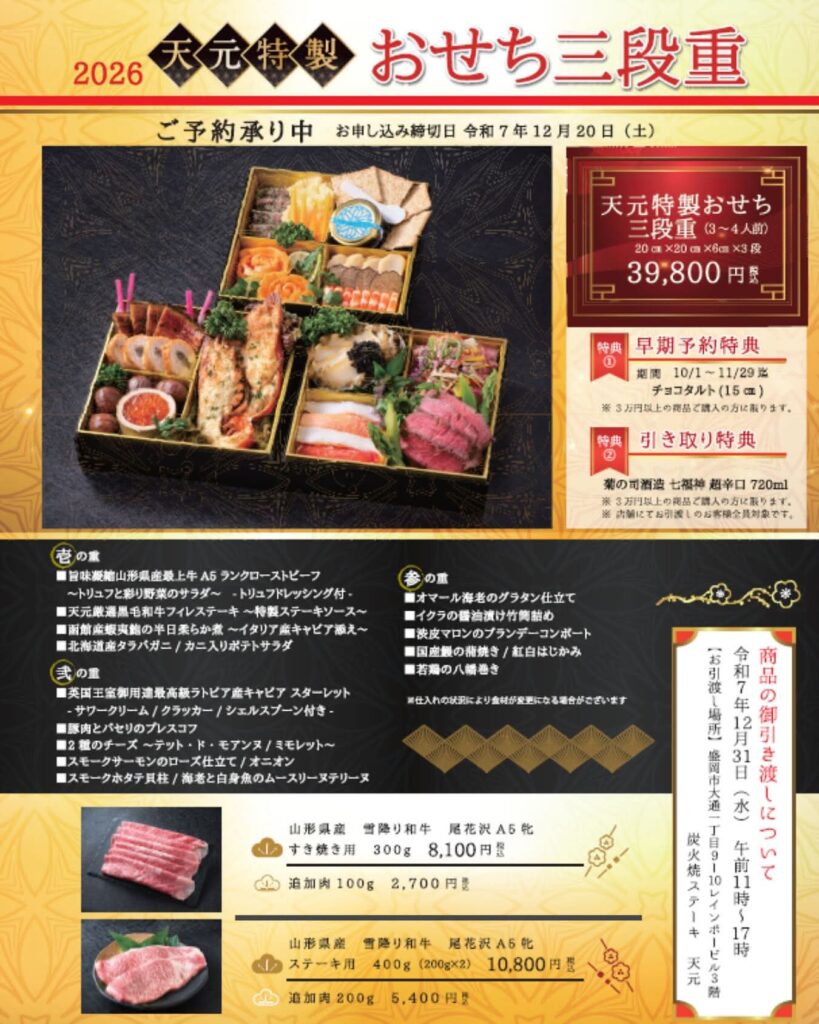 天元特製 おせち三段重のご案内
