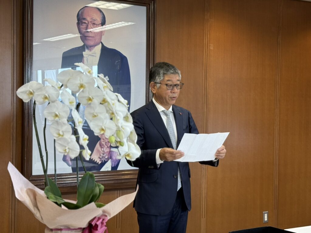 直前のリハーサルでは緊張から上手く言葉に出来ない場面もありましたが式本番では堂々と社長へ挨拶と抱負が述べられました。